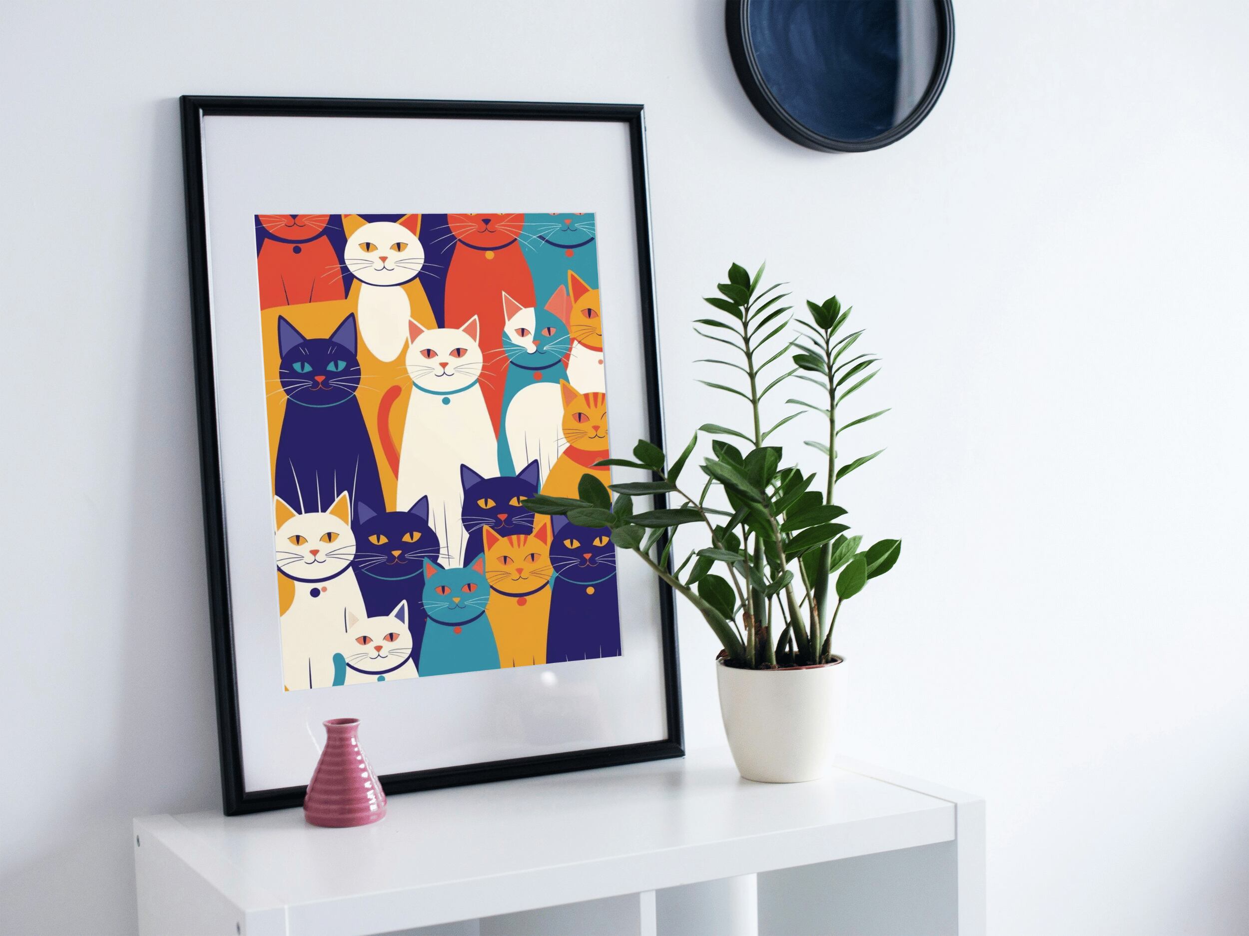 キャンバデジタルアートテンプレート(モダン画風、猫多頭)